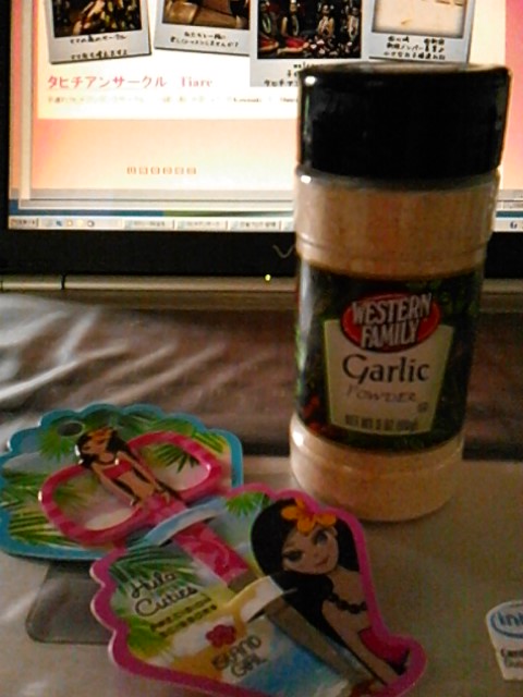 かわいいまゆカットはさみとおいしそうなガーリックパウダー。